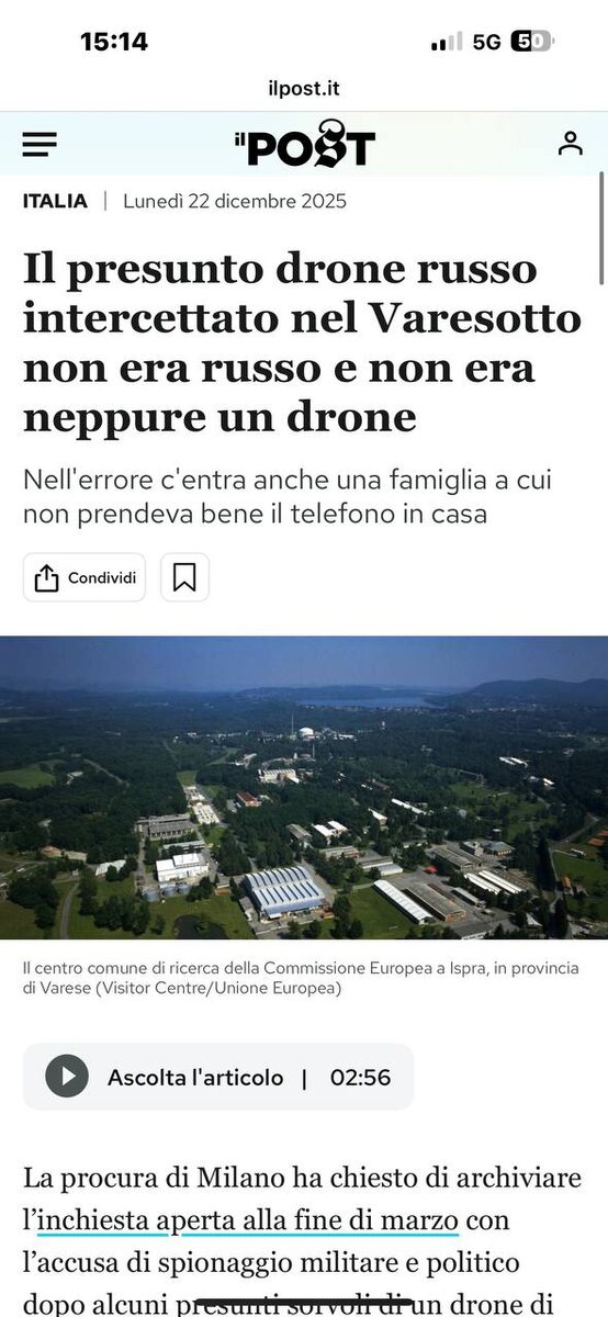 И вообще ни разу не дроном. Прокуратура Милана закрывает дело о мартовском пролете над «чувствительными обьектами» на озере Маджоре. Как это не русский???? Да еще и не дрон. Мы будем жаловаться! Сальное Дифлопэ