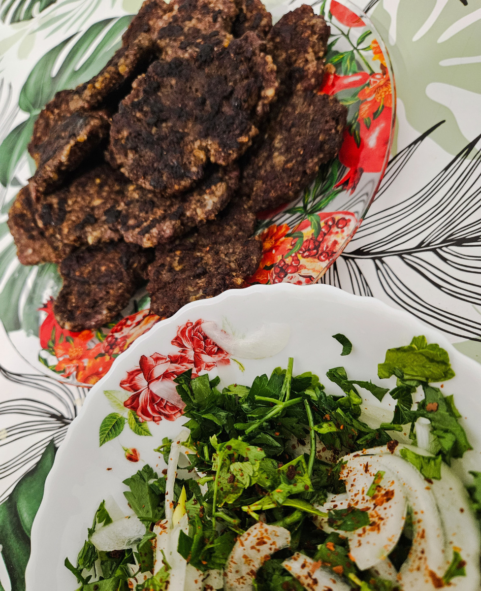 Для приготовления таких котлеток необходимо иметь кофемолку или булгур измельченый . В магазинах часто продают целый булгур. Кёфте булгур это измельченный булгур , который быстрее набухает и лучше создаёт однородную консистенцию. Также говяжий фарш или самим его сделать .