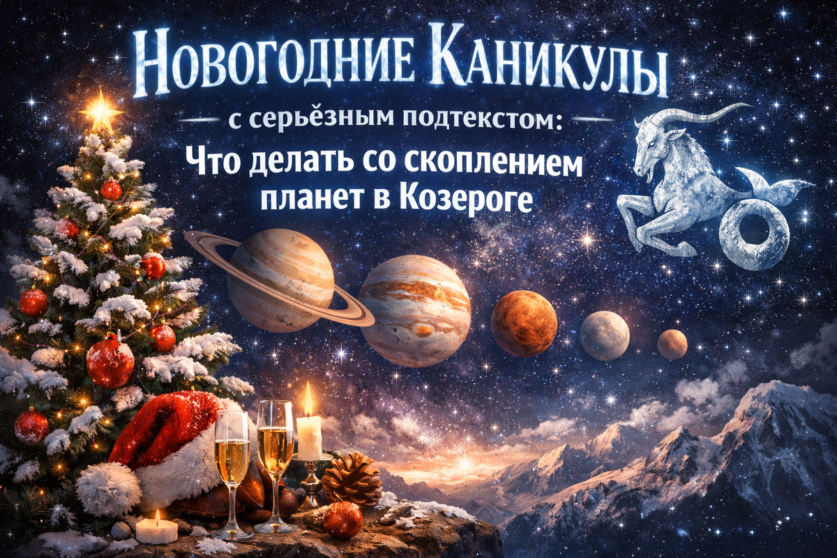 Новогодние каникулы традиционно воспринимаются как пауза. Отдых, отключённый телефон, отсутствие планов, жизнь «без режима». И в целом — это нормально. Но есть один нюанс... В этом году небо на каникулах совсем не про расслабленную спонтанность. Солнце, Марс и Венера будут находиться в знаке Козерога — а это знак структуры, ответственности, целей и долгосрочных результатов. И даже если вы не собираетесь активно работать, энергия этого периода всё равно будет подталкивать к вопросам: