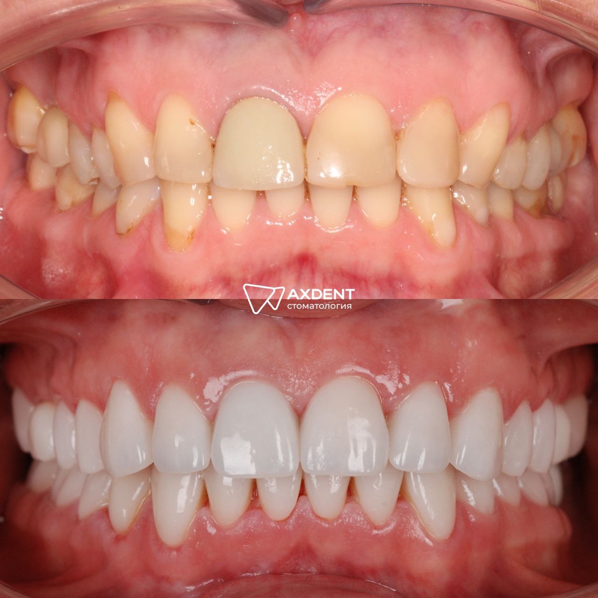 Что такое преображение зубов? Это не только визуальная картинка. Создавая новую улыбку, мы приводим все параметры зубочелюстной системы к общему знаменателю. И в большинстве случаев для такого знаменателя нужно исправлять прикус. 👉 Сначала проводим терапевтическое лечение (лечим кариесы, пульпиты, гранулемы) 👉 Затем работаем с прикусом 👉 Потом устанавливаем импланты 👉 В финале - протезирование керамикой Не всегда возможна коррекция прикуса, если во рту есть импланты. Иногда перед ортодонтическом лечением мы вынуждены удалять их и устанавливать новые после окончания ортодонтического этапа. Эта пациентка пришла к нам с давно установленными имплантами. Но наш ортодонт спланировал коррекцию прикуса так, чтобы брекеты не помешали их спокойному существованию. Такие манёвры не всегда возможны, но без разбора ставить крест на возможности ортолечения при наличии зубных протезов, ошибочно. Всё индивидуально и нужно думать о том, как минимизировать траты пациента. Начали коррекцию в феврале 2