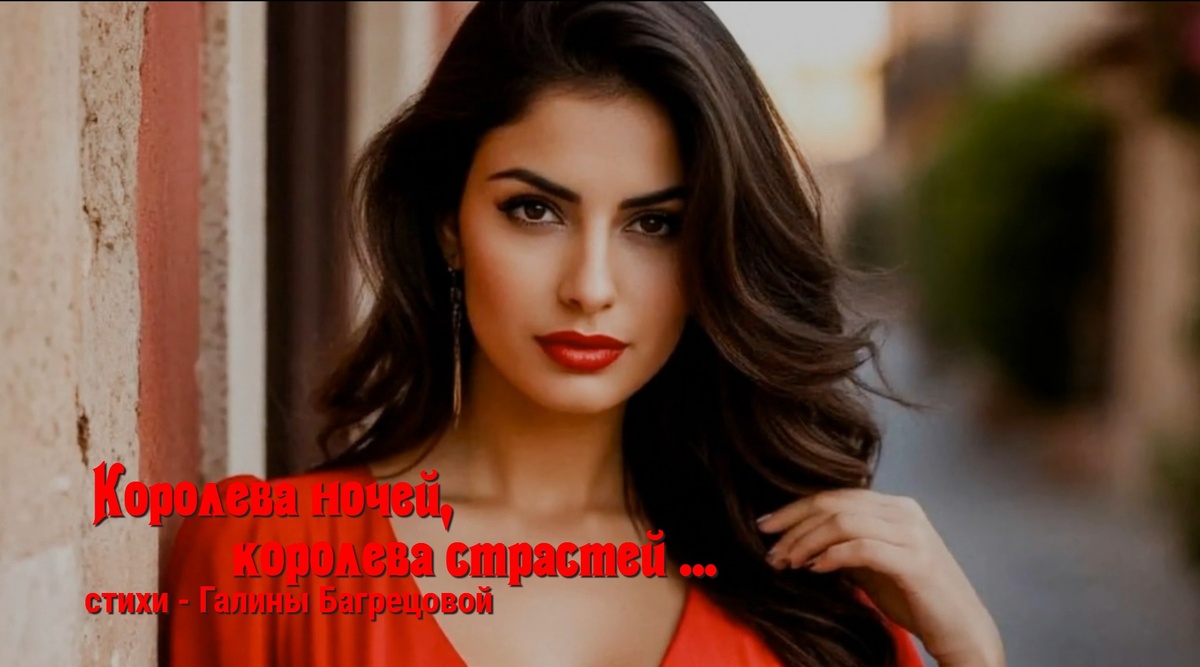 Название песни другое ... Вы можете её послушать на сайте Рутуб ... С уважением Галинка ... ***** Всегда была моим огнём, Моей в ночи лучиной. И всё в сознании было сном, А всё в душе - пучиной ... ***** В одном была, как фитилёк, В другом - морской волною. Я полюбить тебя бы мог, Лишь ты была со мною ... ***** А ты хотела быть в огне, Лишь там - за облаками. И падать камнем, а на дне, Печатать страсть шагами ... ***** Королева ночей, королева страстей Белый ангел мечты - прошепчу твоё имя ... Я всегда так хотел быть немножечко с ней И она заправляла мечтами моими ... ***** Ты быть хотела этой - той, Порочною Богиней, И чтобы месяц золотой, Твоё шептал мне имя ... ***** А чтобы день, что полон дел, В чреде хлопот хороших, Не позволял, чтоб не узрел, Тебя в толпе прохожих ... ***** А я тебя везде искал, Где паперти, палати, Но только вот - не замечал, ... Что ты в моей кровати ... ***** Королева ночей, королева страстей Белый ангел мечты - прошепчу твоё имя ... Я всегда так хотел быть н