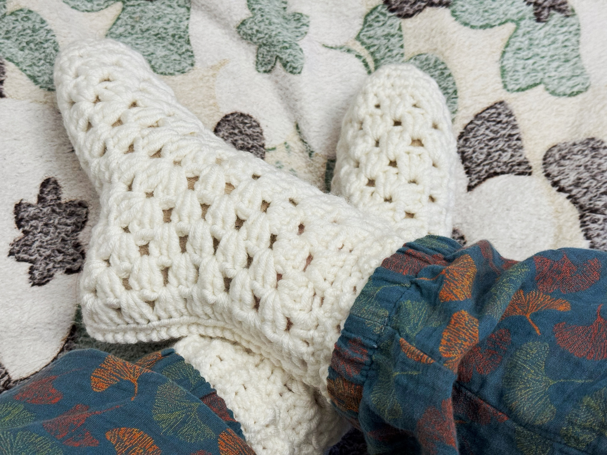 Также обратите внимание на выбор пряжи. Эти носки идеально подходят как для осени, так и для зимы. Лучше выбрать пряжу из синтетического мягкого волокна с содержанием шерсти не менее 30% или из натурального мягкого волокна, которое не будет колоться и причинять дискомфорт, если надеть на босую ногу.
