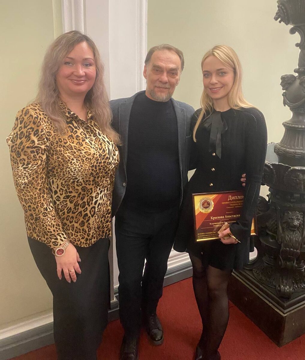 На форуме «Лидеры дела» , справа актриса театра и кино Анастасия Крылова, слева президент медиахолдинга «Продвижение от А до Я» Анастасия