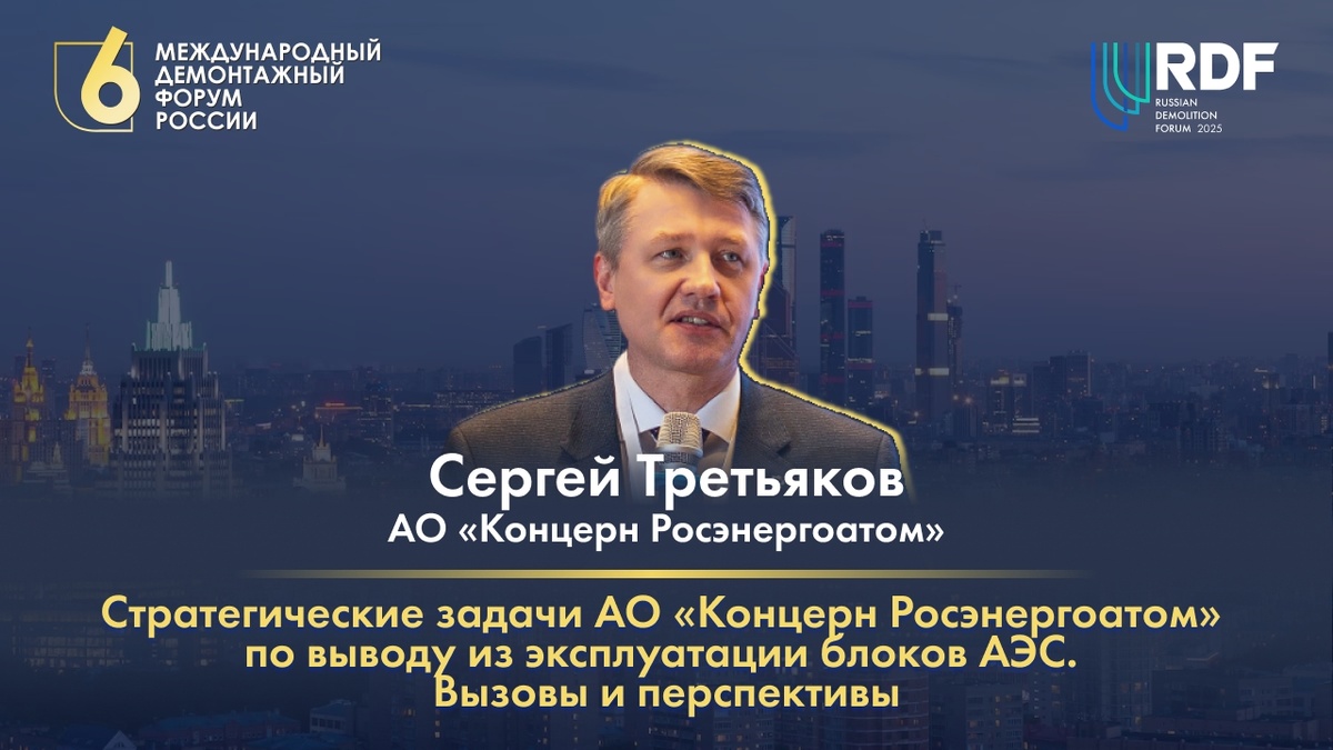 Он представил масштабную дорожную карту: к 2045 году будет остановлено около 30 энергоблоков, а общая продолжительность работ по выводу каждого из них оценивается в 20–30 лет. Спикер подробно рассказал о текущем статусе и специфических вызовах на ключевых площадках, отметив проблемы фрагментации высокоактивного оборудования. «Мы надеемся на контакты и использование компетенций организаций Национальной Ассоциации Демонтажных Организаций для проведения работ по демонтажу и фрагментации оборудования», — отметил Третьяков, подчеркнув, что для демонтажа «чистых» зданий и сооружений опыт отраслевых компаний будет востребован.