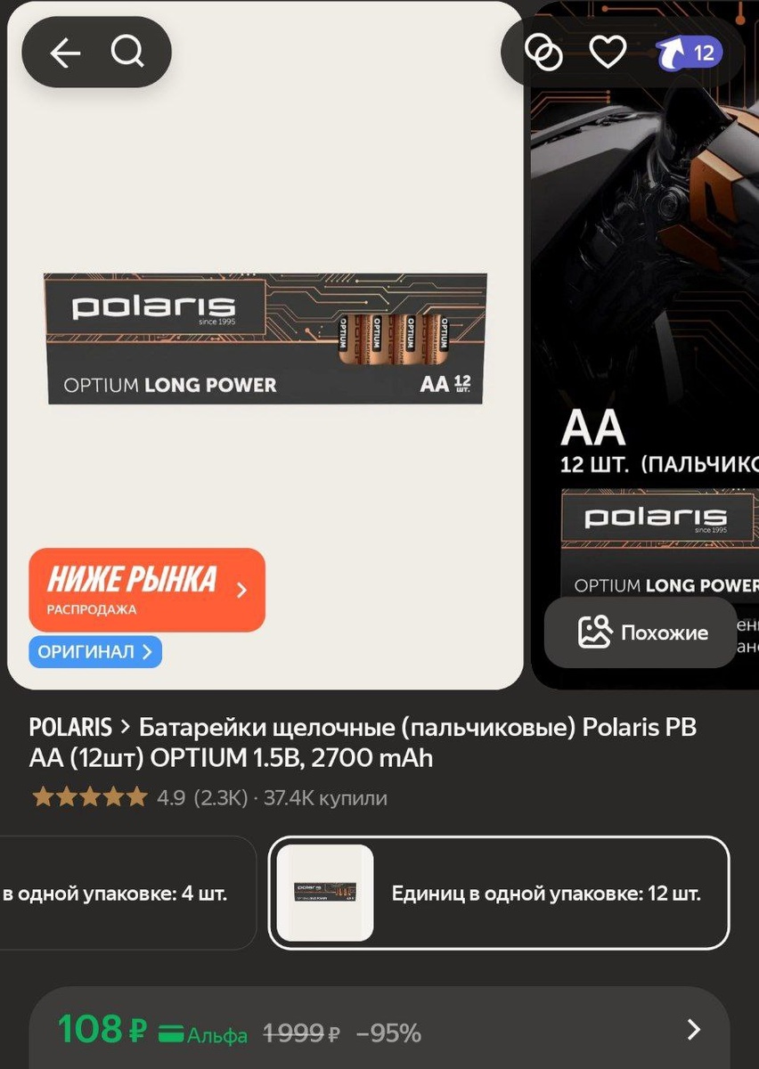 🔥Батарейки щелочные (пальчиковые) Polaris PB АА (12шт) OPTIUM 1.5В, 2700 mAh за 108₽
