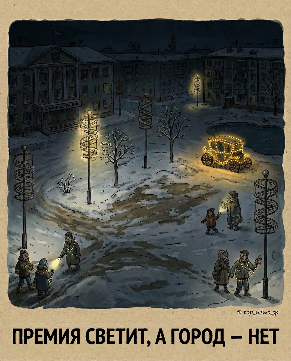 Оксане Ерохановой Совет выписал премию. Денежную, весомую. Искренне рад. Любой труд должен быть оплачен, особенно управленческий. Но есть ощущение, что весь новогодний бюджет ушёл на поздравительные конверты, а городу досталась энергосберегающая тьма. 🗣 Нам пишут из сумрака: «Такого "украшенного" города давненько не было. Вдоль ПКА (прим. Проспекта Красной Армии) и Углича вообще не работает иллюминация. У Дворца убогонько... Площадь у администрации с криво наряженной ёлкой. Одинокая карета напротив пруда». Подтверждаю: нуар. Бульвар Кузнецова работает в режиме строгой светомаскировки. На площади у администрации от былой роскоши остались только арка и шары, раскиданные по углам, как игрушки в детской, где давно не убирались. Но фатализм отставить. Темнота, как известно, скрывает недостатки благоустройства. А свет мы добудем сами. Зажигайте окна, соседи. Доставайте старые гирлянды. Если городская сеть не тянет, будем светить душевным теплом. ✨ PS Оксана Владимировна, с премией вас! Може