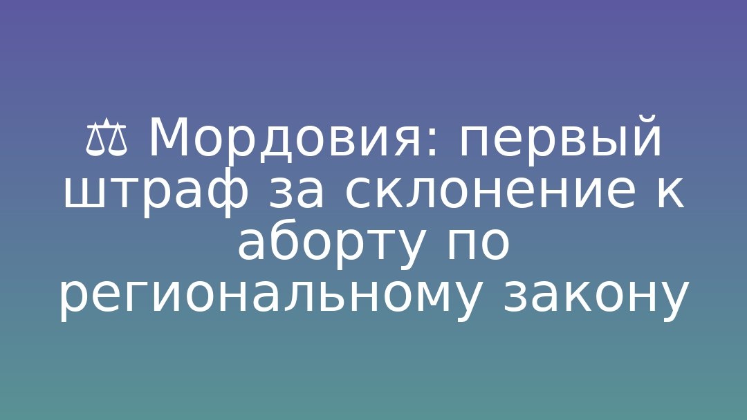 В Саранске мировой судья назначил штраф 5 000 руб. мужчине, который просил женщину прервать беременность и предложил оплатить процедуру. По данным фонда «Женщины за жизнь», это первый случай применения соответствующего регионального закона в Мордовии. Женщина родила двоих детей в июне 2025 года.
