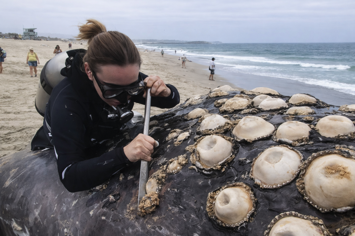 Представьте зуд, который нельзя унять. Не на минуту, не на час — а на долгие дни, пока вокруг только солёная вода и бесконечная глубина. Гигантский кит продолжает путь, как и положено властелину океана, но его кожа превращается в живой ковёр: тысячи непрошенных пассажиров цепляются, кусают, раздражают, делают каждое движение тяжелее. Он не может просто поднять «руку» и почесаться. Он может лишь терпеть. И ждать, когда в этом большом мире найдётся кто-то, кто увидит его беду и решит вмешаться. И однажды рядом появляются люди в масках и ластах — будто открывается подводный салон, где клиентом становится сам океанский великан. 👉 Что произошло дальше — смотрите в этом видео: Если кит и кажется нам непобедимым, то это только издалека. Вблизи видно другое: кожа уставшего великана покрыта целыми колониями паразитов. Они не просто «едут зайцем» — они раздражают, мешают, заставляют тело постоянно реагировать, словно океан сам стал тесной одеждой. Киту остаётся одно — плыть дальше, терпеть и н