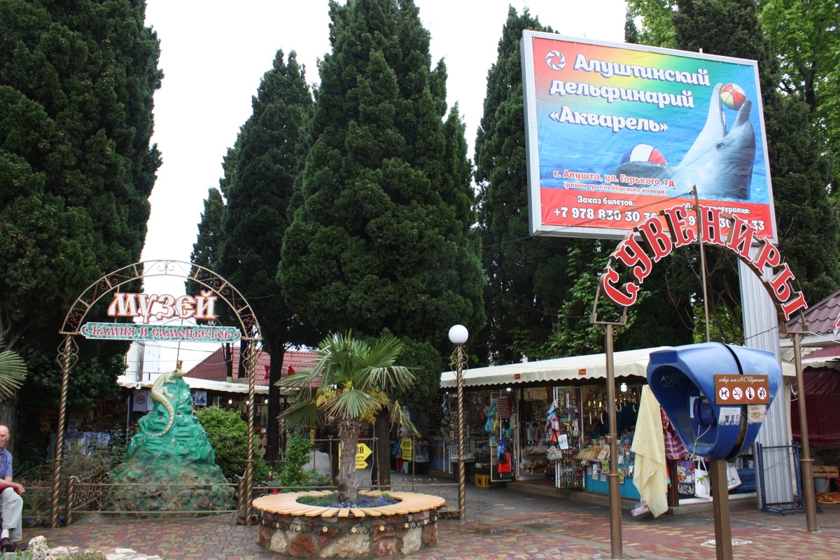 Случайно выходим к Крокодиляриуму - новой достопримечательности в Ялте, открытой в 2011 году, где можно увидеть вживую крокодилов из разных уголков планеты - от Нильского до Кубинского.