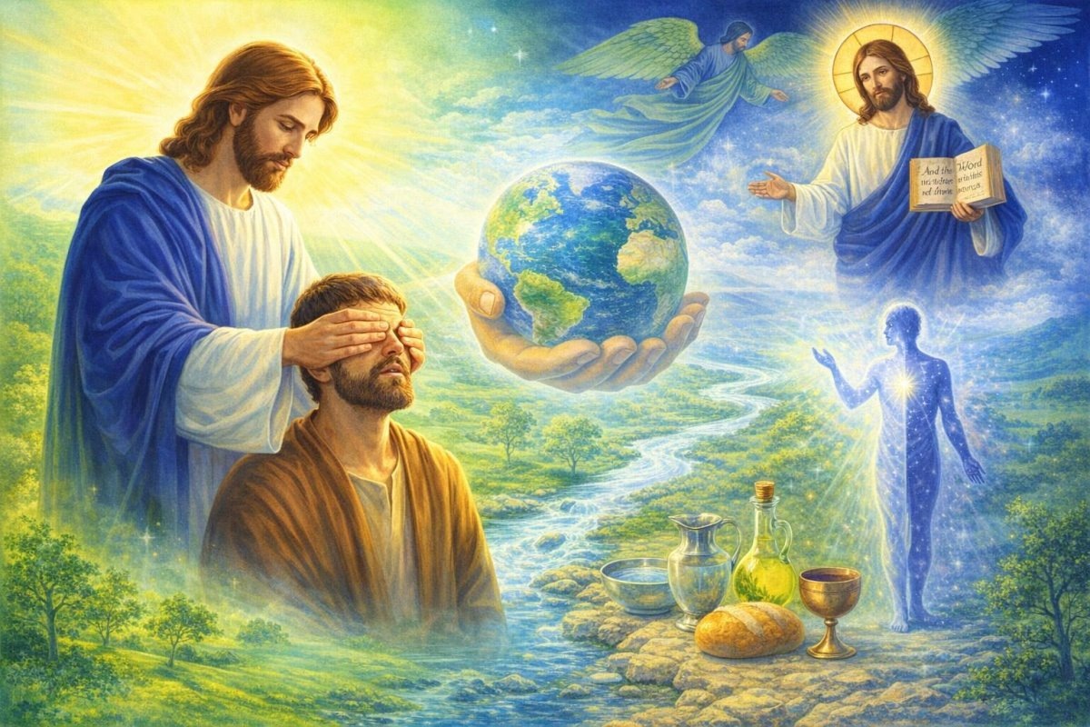 Христос исцелил слепого посредством материи, и, когда мы читаем Евангелие и всю Библию открытыми глазами и осознаем отношение к материи, открывающееся в них, мы понимаем, что резкое противопоставление духовного материальному, как это принято в современном христианстве, несвойственно Священному Писанию. Бог сотворил и дух, и материю, Бог сотворил весь мир, и вся материя принадлежит Ему. И мы знаем из Библии, что все, что Он создал, «весьма хорошо» (Быт. 1:31). Поэтому некоторая тенденция «презирать» все материальное, сводя религию только к духовному, есть тенденция ложная и не христианская. Многих трагедий нашей христианской жизни, общественной и личной, можно было бы избежать, если бы мы помнили, что Бог сотворил не только дух, но именно то поистине удивительное сочетание духа и материи, которое и есть наш мир. Настоящая перспектива, настоящая цель мира в том, чтобы все материальное одухотворялось, то есть приобретало духовное измерение, а все духовное воплощалось. Именно так осуществи