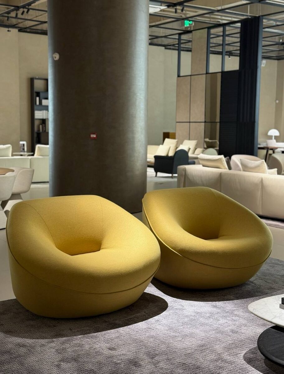 центром! ✨ Почему они уникальны: 1. Скульптурный Дизайн: Их округлые, органичные формы напоминают две мягкие гальки или уютные коконы. Это не просто кресло, это арт-объект, который приковывает взгляды и создает динамику в пространстве. 2. Энергия Цвета: Насыщенный горчично-желтый оттенок — мощный акцент, который мгновенно оживляет пространство, придает ему тепло и солнечную динамику, делая его незабываемым. 3. Тактильное Совершенство: Плюшевая, мягкая обивка (возможно, букле или велюр) не только выглядит притягательно, но и дарит невероятные тактильные ощущения, приглашая к полному расслаблению. 4. Универсальный Акцент: Идеально подходят как для создания яркой пары, так и для одиночного использования в качестве фокусной точки в гостиной, спальне или читальном уголке. Отправьте Ваш проект, мы сделаем расчет @Mak_sim111