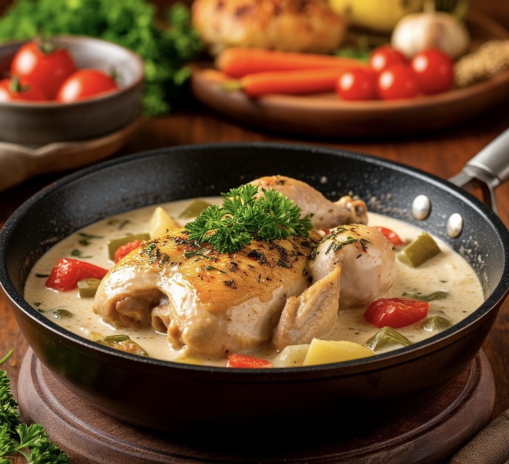 После долгого дня хочется не просто поесть, а насладиться вкусным ужином. Этот рецепт курицы с овощами и сливочным соусом готовится быстро, а выглядит, как будто вы потратили на него часы.
