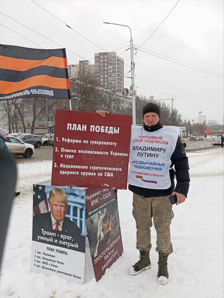 Уфимский штаб НОД 13.12.2025 г. провёл пикет со сбором подписей за предоставления чрезвычайных полномочий В. В. Путину и расследования событий 1991 года для победы в СВО.