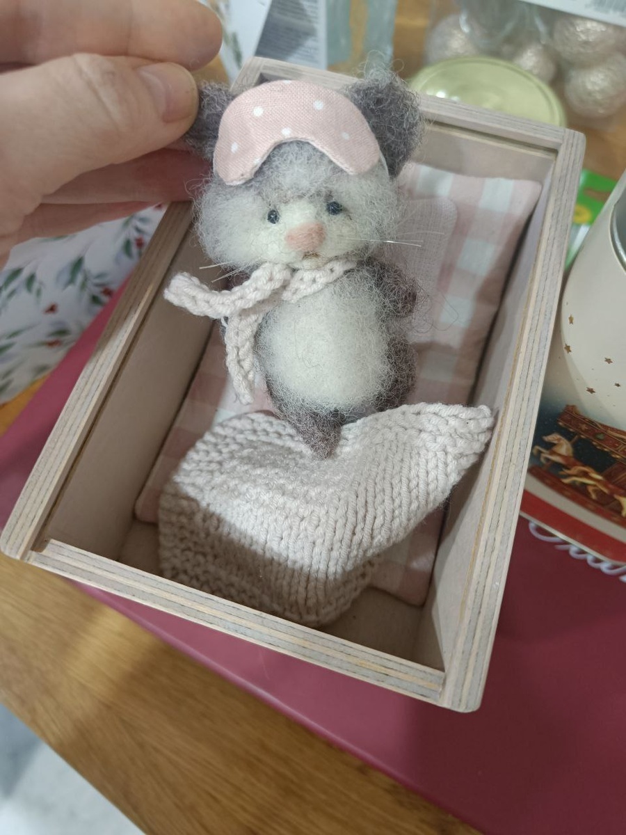 Потрясающий котик из шерсти - техника валяние. Он двигается и спит в настоящей кроватке!