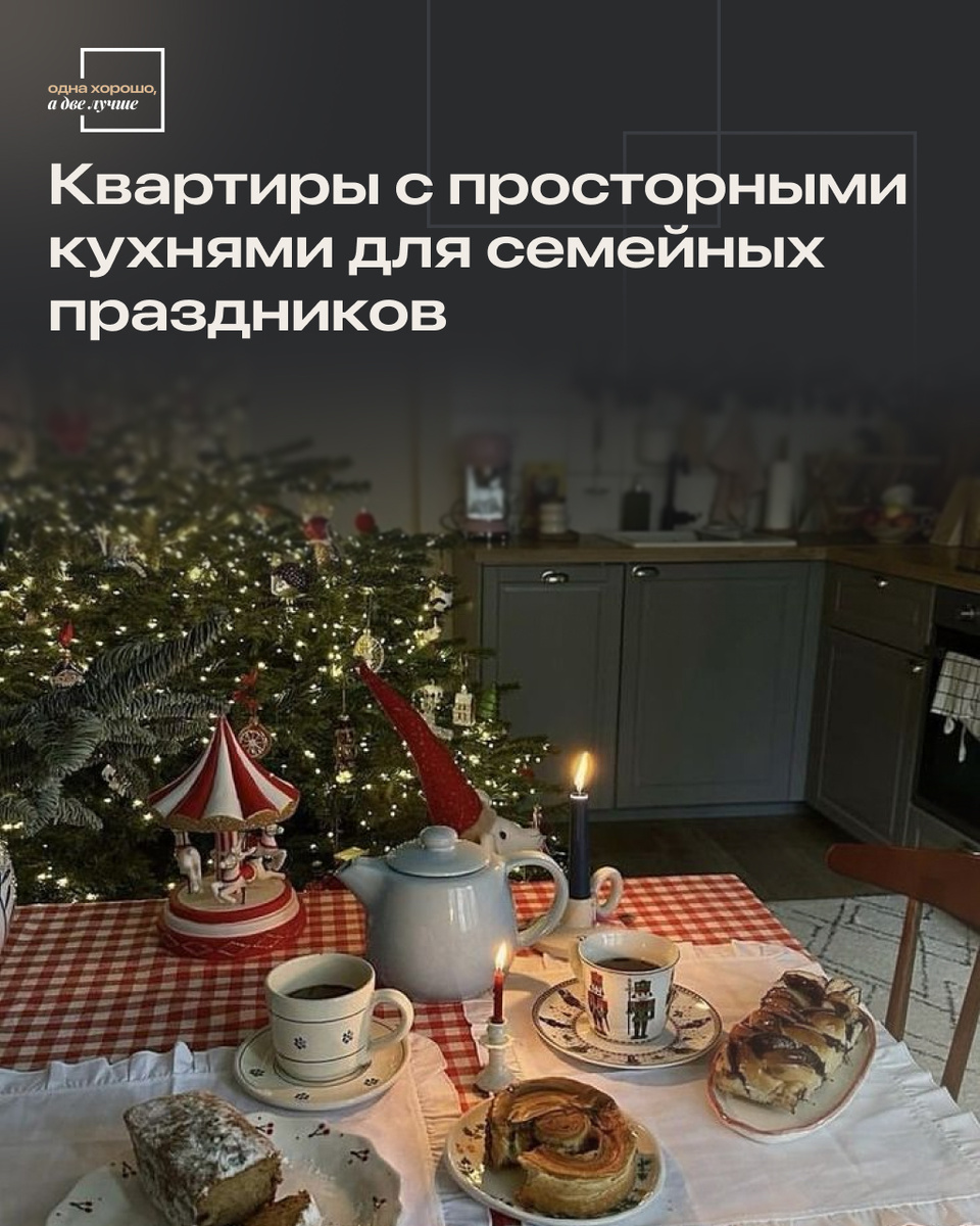 Время предновогоднего контента официально начинается! И нами было принято решение начать с самого тёплого: С квартир, где Новый год хочется встречать большой дружной семьей или компанией самых близких людей — поэтому, мы собрали подборку с просторными кухнями! На них всем хватит места, чтобы спорить, с чем готовить оливье, жечь записки для шампанского и загадывать самые искренние желания под бой курантов 🥂✨ В карточках посчитали разные форматы от субсидированной семейной ипотеки до стандартных программ и рассрочек Если вы, так же как и мы, за большие и уютные домашние праздники — заполняйте форму https://mrqz.me/ohdl и приходите на бесплатную консультацию Чтобы успеть купить по старым ценам и спокойно подготовиться к следующему Новому году 😉