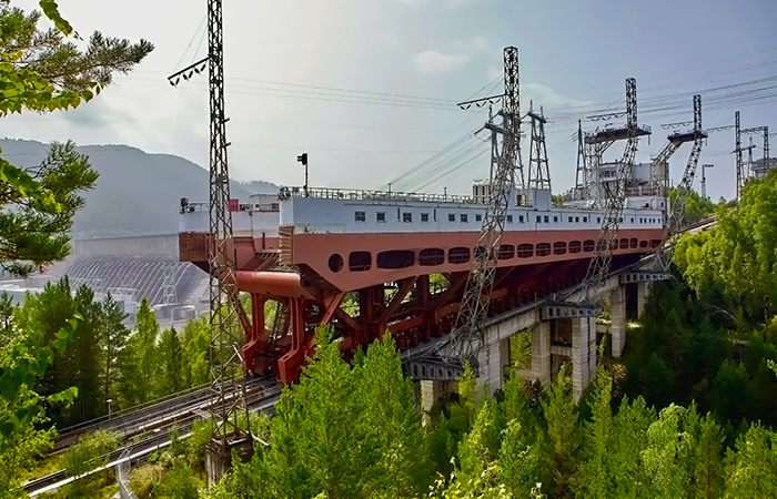 Масштабы красноярского судоподъемника впечатляют даже по современным меркам. Когда камера заполнена водой и в ней находится судно, общая масса движущейся конструкции достигает 8100 тонн. Это вес примерно 500 груженых самосвалов. Пустая камера весит 4500 тонн — все равно что два с половиной самых больших пассажирских самолета. Перепад высот, который преодолевает сооружение, составляет больше ста метров — примерно как 35-этажный дом. Чтобы поднять всё это на такую высоту, требуется огромное количество энергии. Мощность электродвигателей, приводящих в действие гидравлические насосы, составляет более 4000 киловатт. Этого хватило бы для освещения небольшого города.