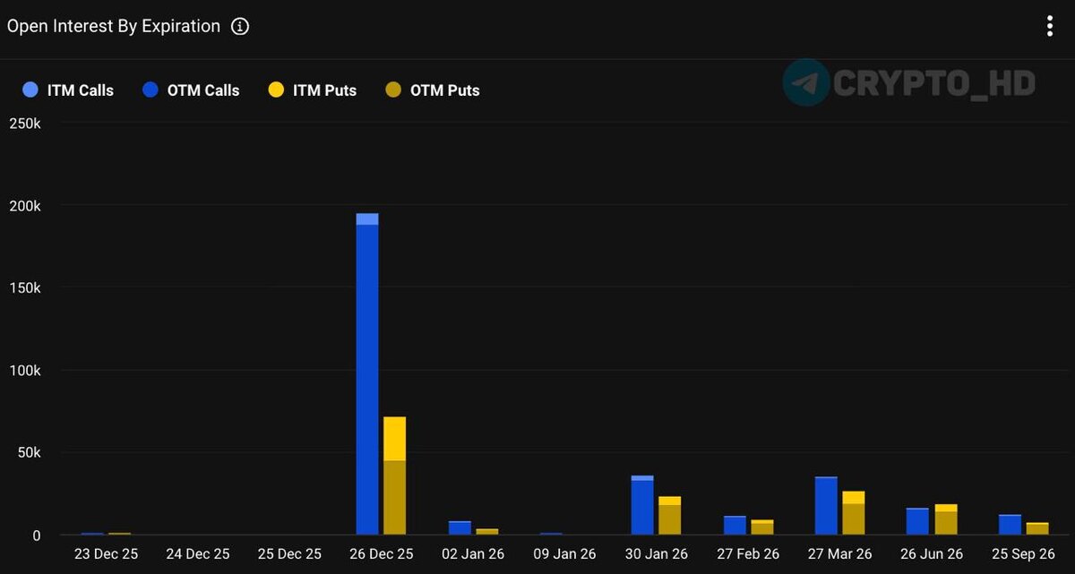 🤯 Deribit: 26 декабря состоится экспирация на $27,000,000,000 в опционах на BTC и ETH. Под экспирацию попадает свыше 50% открытого интереса (OI) на Deribit, при этом колл-опционы превосходят путы почти в 3 раза – явный бычий перекос. Crypto Headlines