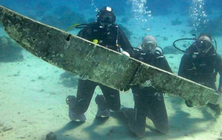 Об этом таинственном снимке известно совсем немногое. Очевидно, что на нём изображён массивный нож, который держат трое аквалангистов где-то на дне какого-то водоема. Это то, что можно поверхностно и сразу сказать про фото. А ведь этот снимок одно время быстро набрал популярность в социальных сетях. По слухам, еще в 2014 году группа профессиональных дайверов обнаружила этот нож. На фотографии, сделанной на месте находки, запечатлены три дайвера, держащие в руках крупный нож. Подробности обнаружения и идентификация объекта не известны. Есть только эта фотография. Фотография была впервые обнародована анонимным пользователем и получила широкое распространение в сети Интернет, включая форумы, посвящённые дайвингу. И тут началось... Посыпались комментарии и предположения, так называемых "экспертов" в теме. Несмотря на то, что личности людей, запечатлённых на фотографиях, не были раскрыты, и они не претендовали на авторство данной находки, но некоторых "ПРОдвинутых" пользователей интернет-р