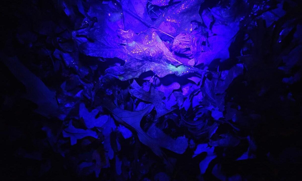 Возможно, это привлекает внимание самок Когда самец белохвостого оленя в брачный период ходит по лесу, он дает о себе знать. Он срывает кору с деревьев своими рогами и трется о них лобными железами. Затем он выкапывает в земле ямку и мочится в нее. Такое поведение демонстрирует доминирование самца и сообщает о том, что он ищет себе пару. Новое исследование показывает, что в сумерках, когда олени наиболее активны, эти потертости и царапины, известные как «указатели», светятся голубоватым светом, который могут видеть другие олени, сообщают ученые в журнале «Экология и эволюция» (Ecology and Evolution). «Я бы сравнил это с дорожными отражателями», — говорит Дэниел ДеРоуз-Брокерт (Daniel DeRose-Broeckert), биолог из Университета Джорджии и ведущий автор исследования. Свечение — это пример фотолюминесценции, свойства широко распространенного в природе, при котором органический материал поглощает свет и переизлучает его на более длинных волнах, например, переводя ультрафиолетовый (УФ) свет в