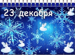23 декабря. Ермоген День снежных ангелов День дальней авиации ВВС России День семейных корней Народные поверья и обычаи: с этой даты день начинает прибывать. На Руси 23 декабря принято было молиться о сохранении острого зрения. Женщины читали заговоры на хороший сон детей. По преданиям, в этот день нельзя хвастаться своими достижениями, поскольку это может привести к их потере в ближайшем будущем. А еще нельзя сплетничать, лгать и преувеличивать, хотя и во благо. Даже небольшой обман приведет к трудностям. Нельзя рассказывать чужие тайны и секреты - к бедам. Тем, у кого плохое зрение, нельзя надевать чужие очки. Предки верили, что если лечь спать после 00:00, может явиться дух Полуночницы, будет пугать, мешать спать, и чтобы избавиться, придется окуривать каждый угол в помещении дымом полыни, которого боятся все недобрые силы. День в истории 1672 - открыт второй по величине спутник Сатурна - Рея. 1914 - из боевых самолётов "Илья Муромец" образован воздушный флот Российской империи.