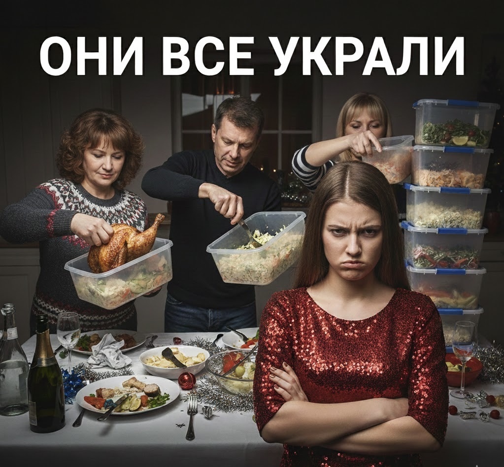 Марина вцепилась ногтями в дверной косяк. Гнев вспыхнул ледяной волной. Это не родственники, это просто колхоз какой-то. Это был наглый рейд. Пришли нахаляву поесть, да ещё и с собой тащат половину не дождавшись даже курантов.