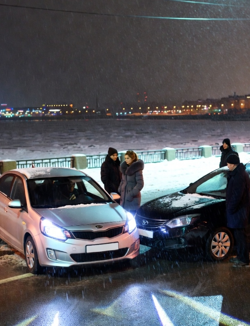 Светофор переключился. Передняя машина тронулась медленно, будто водитель колебался. Олег тоже нажал на газ, но в этот момент сзади раздался резкий визг тормозов и глухой удар. Его толкнуло вперёд — ремень безопасности врезался в грудь. Авто Олега по инерции врезалась в ту самую серебристую «Киа».