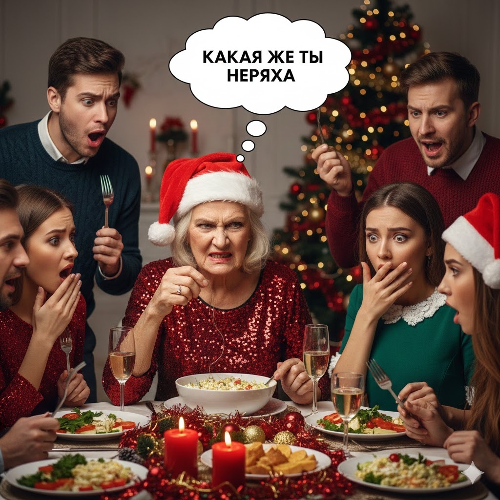 Людмила Григорьевна обвела гостей полным отчаяния взглядом, ища союзников. Но все отводили глаза. Даже тётя Люба, которая всегда поддерживала свекровь, теперь смотрела в пол. Никто не хочет защищать человека, который подкладывает волосы в еду. Репутация важнее всех новогодних застолий.