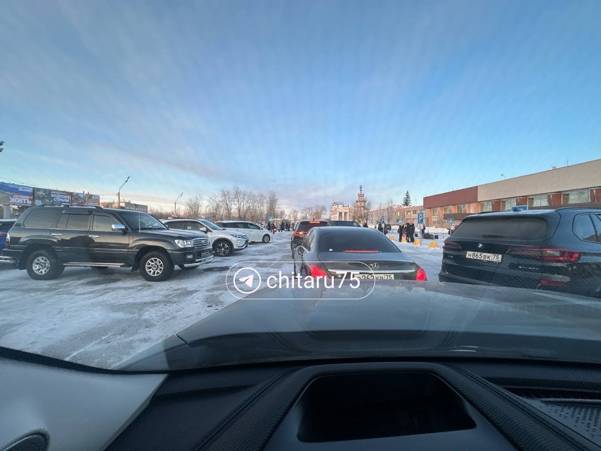 На парковке аэропорта Читы собралась огромная пробка.