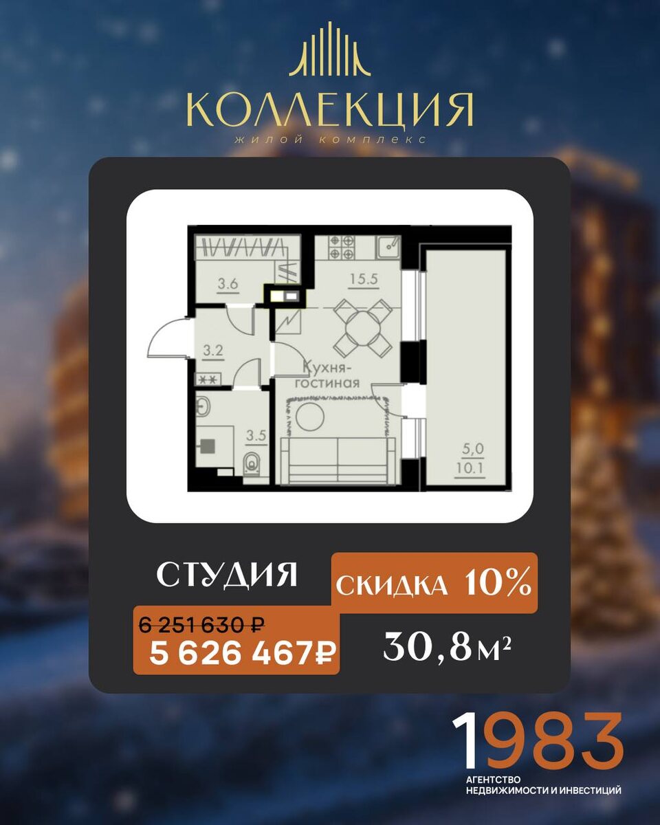 🎁 🤔Мечтаете о собственном гнёздышке? Часто всё упирается в вопрос: «Взять хоть что-то» или «Подождать идеального варианта»? Давайте сравним два варианта, чтобы выбор стал очевиден. 📌 Базовый минимум: Обычная студия «лишь бы своя» 🏙️ Район: Часто — спальный, без инфраструктуры. 🏘️ Дом: Типовая застройка, без изюминки. 😶 Ощущения: «Я купил квартиру». И на этом всё. 💸 Финансы: Полная цена. Ипотека = стандартные условия. А теперь закройте глаза и представьте роскошный максимум👇 🏆 Роскошный максимум: Студия в ЖК «Коллекция» — ваша первая инвестиция в жизнь без компромисс, ващ персональный клуб, дизайнерский арт-объект и статусная инвестиция. 🌆 Район-легенда: Исторический центр и прекрасные виды на город за окном. 🛎️ Ощущения: «Я купил новый уровень жизни». Каждый день — как в отеле 5*. 🤑 Финансы: 🔥 ДЕЙСТВУЕТ НОВОГОДНЯЯ АКЦИЯ! Сейчас студия в ЖК «Коллекция» доступна со скидкой 10%. Вы получаете недвижимость на исключительных условиях. Это не просто скидка — это блестящая
