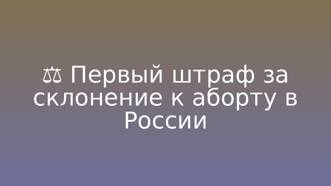 за склонение беременной к прерыванию беременности. По данным благотворительного фонда «Женщины за жизнь», это первый случай назначения штрафа по такому делу в России. По материалам дела, после сообщения о беременности двойней мужчина предложил оплатить аборт; женщина отказалась и обратилась за поддержкой в фонд. В июле 2025 года она родила мальчика Богдана и девочку Варвару.