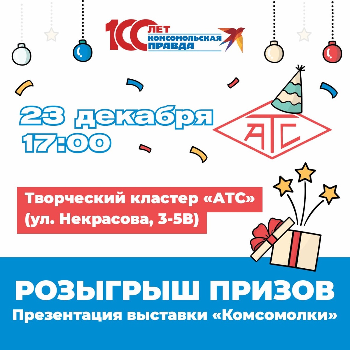 ! Приходите, вас ждет классное открытие и розыгрыш призов: книг издательства «КП», фирменного мерча и многого другого. А еще теперь там можно будет посмотреть на выставку, посвящённую столетию «Комсомолки». Экспозиция расскажет об истории издания и ключевых этапах его развития. Презентация и официальное открытие выставки состоятся 23 декабря в 17:00. 📍Творческий кластер АТС Читай нас в MAX! | Подпишись на Комсомольскую правду: СПб