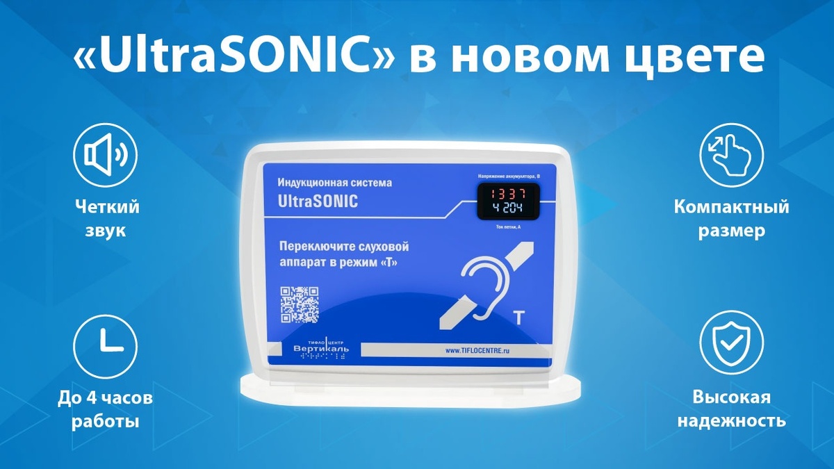 Тифлоцентр «Вертикаль» продолжает развивать линейку оборудования для создания доступной среды и рад представить обновленную версию популярной индукционной системы – портативную индукционную петлю «UltraSonic» в стильном синем исполнении. Это та же надежная и эффективная система, которая уже зарекомендовала себя в общественных местах, но теперь с новым цветовым решением корпуса, которое легко впишется в современный дизайн любого пространства. UltraSonic предназначена для передачи четкого звукового сигнала людям со слуховыми аппаратами в условиях высокого уровня шума или при наличии физических барьеров, ведь в общественных местах слуховые аппараты, как правило улавливают все шумы вокруг себя и общение с нужным человеком (например, с сотрудником банка или МФЦ) может быть затруднено. Тут на помощь и приходит индукционная система, которая блокирует посторонние шумы за пределами определенной площади. В случае «UltraSonic» данная площадь составляет 1,2 м2. Система идеально подходит для размещ