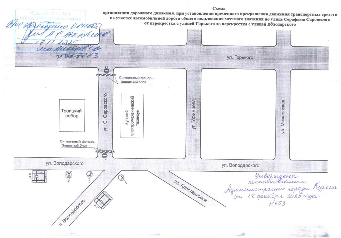 электромеханическим техникумом. В соответствующем документе, опубликованном на сайте мэрии Курска, сказано, что движение уже перекрыто с 20 декабря на участке улицы Серафима Саровского от перекрестка с Володарского до пересечения с улицей Максима Горького. Правда, сколько будет действовать временное ограничение, не указывается. Причина перекрытия движения - обращение Министерства культуры