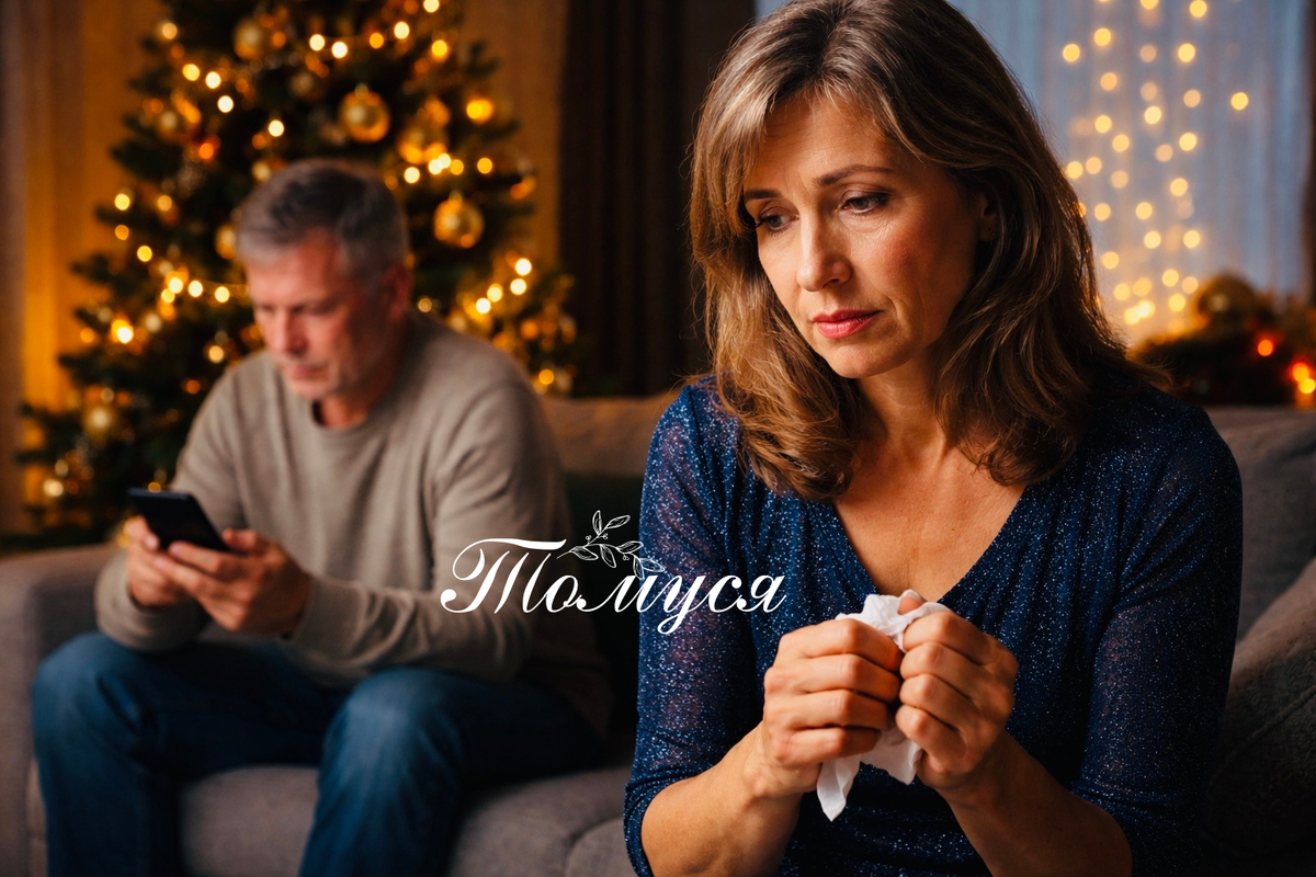 Лена поставила тарелку с салатом на стол и прислушалась. Тишина. Из комнаты доносился только голос Петросяна — муж включил старый «Голубой огонёк». Она вышла из кухни, вытирая руки. Игорь сидел на диване, уткнувшись в телефон. Синий свет экрана падал на его лицо, пальцы быстро скользили по клавишам.
