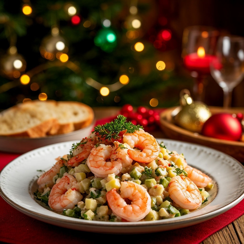 Салат Оливье – это не просто блюдо, это символ праздника, уютных семейных вечеров и, конечно же, Нового года. Его знают и любят практически все, но что, если мы скажем вам, что можно придать этому проверенному временем рецепту новое, более изысканное звучание? Представляем вам Оливье с креветками – блюдо, которое удивит ваших гостей и подарит вам новые гастрономические впечатления. Почему именно креветки? Традиционный Оливье с колбасой или мясом – это сытно и вкусно. Но креветки добавляют салату легкости, нежности и утонченности. Их сладковатый вкус прекрасно сочетается с привычными ингредиентами, а текстура придает салату приятную пикантность. Это отличный вариант для тех, кто хочет попробовать что-то новое, но при этом сохранить любимый вкус Оливье. Ингредиенты, которые создают магию: Для приготовления нашего Оливье с креветками вам понадобятся: Шаг за шагом к идеальному салату: Вариации и секреты идеального вкуса: Оливье с креветками – это не просто замена традиционного ингредиента.