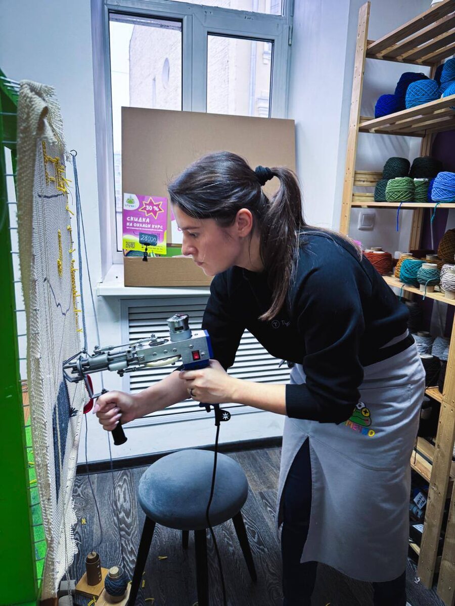 Ещё одно открытие этого года - тафтинг. Занятие, на котором можно создать свой коврик в стиле Pinterest. В основе техники пробитие плотной канвы нитями с помощью пистолета, который называется тафтер. Пару слов о самой студии, называется ХмечнО (ударение на последнюю букву). В семье основательницы обращаются друг к другу приветственно «Хме», его смешали со словом смешно, получилось название студии, обозначающее приятное, смешное времяпрепровождение. У студии есть филиалы не только в Москве, но и в Питере, Казани и Екатеринбурге. Занятие строилось так - сначала небольшой инструктаж, потом первые линии под наблюдением мастера и затем уже работа с собственным рисунком. Его нужно прислать заранее, чтобы успели нанести на канву. Кстати, при записи с тобой поделятся альбомом с готовыми эскизами, можно выбрать из них. Настя выбрала романтичную луну над холмами. Тафтер тяжёлый, нужно быть готовым к прикладыванию усилий. Чем-то похоже на бокс, отличное средство для выплёскивания эмоций, при э