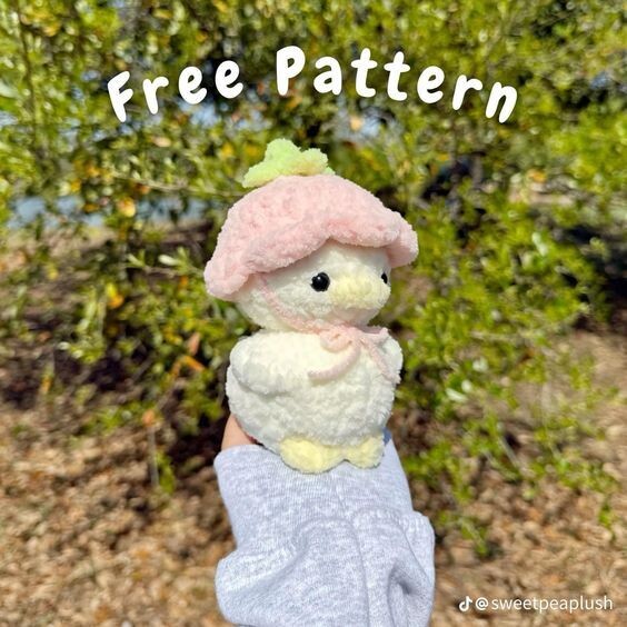 На просторах пинтереста я нашла утёнка в шапочке-клубничке.🍓 Автор подобрал очень нежные цвета и утёнок получился таким же. Вот он: