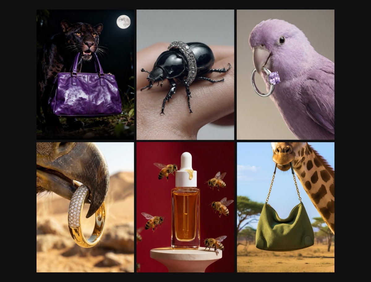 Как делать такие креативы самостоятельно? Сегодня поговорим о скролл стопперах (Scroll Stopper) — визуальных креативах, которые способны выбиться среди прочих и зафиксировать взгляд пользователя дольше остальных. Самое важное в этом посте — не промпты (которые можно найти в комментариях к посту в тг). А принцип работы этого подхода и как развивать свои идеи. CTR поднимают не сами животные, а неожиданные визуальные связки, которые цепляют внимание. К слову, данный подход не напрямую влияет на CTR, он влияет именно на фиксацию внимания, но тк ее отследить в реальных условиях почти невозможно, мы говорим про косвенный показатель — CTR. Чтобы создать свой уникальный креатив под ваш продукт, вы можете комбинировать 3 переменные, после чего вы получаете десятки неожиданных визуальных решений: 1) Герой (животное / человек / робот / объект); 2) Действие (держит / несёт / обнимает / толкает / висит / тянет —взаимодействует с товаром); 3) Эмоция или эффект (ми-ло-та / драматичность / скорость /