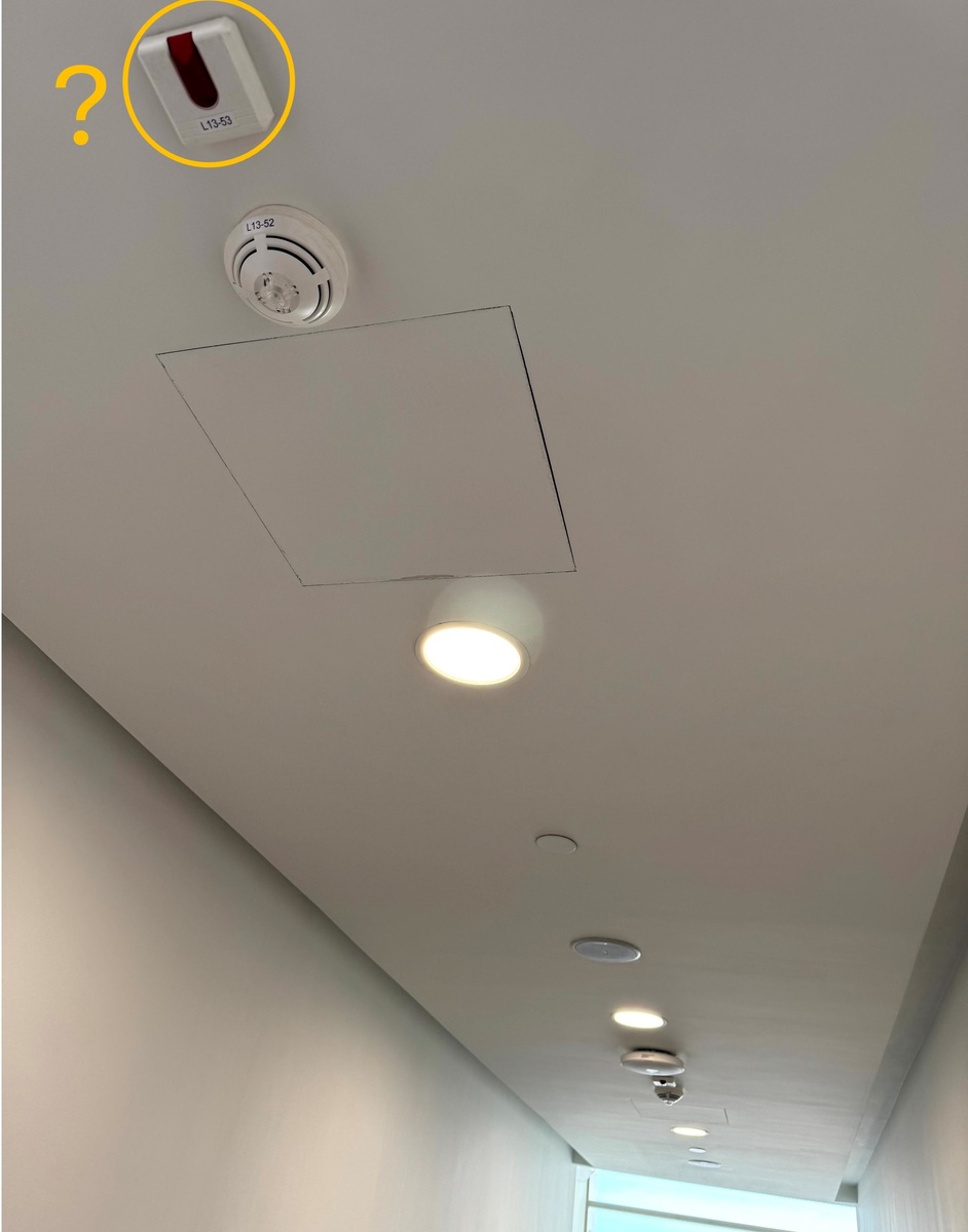 Часто на потолке можно увидеть подобную коробочку. Что это и для чего используется? Пара подсказок. Таких устройств обычно не встретить на потолках типа грильято. Может и инспекционный лючок рядом не зря? Варианты ответов: Правильный ответ: Выносной индикатор пожарного датчика, установленного за потолком Пояснения: Правильное название из СП 484.1311500.2020 «Системы пожарной сигнализации и автоматизация систем противопожарной защиты» таково: п. 3.3 выносное устройство индикации (ВУИ): Техническое средство, предназначенное для дополнительного извещения о режиме работы пожарного извещателя. А вот само требование: 6.2.13 Пожарные извещатели, устанавливаемые скрыто, например в пространствах за подвесным потолком, под фальшполом, внутри технологического оборудования, внутри вентканалов и т. п., должны быть подключены к … ВУИ (выносное устройство индикации), при этом ВУИ должны быть размещены в зоне свободной видимости. Вот, о чем тут речь. В запотолочном пространстве могут размещаться комму