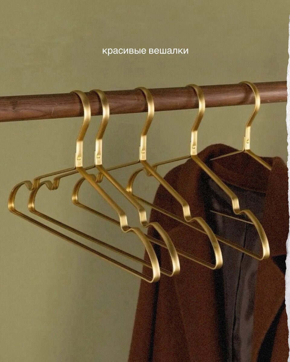 Подборка шикарных вешалок для одежды с маркетплейсов: латунные для нижнего белья и платков, деревянные с перекладиной для костюмов, плоские алюминиевые, дизайнерские со жгутом, стилизованные винтажные
