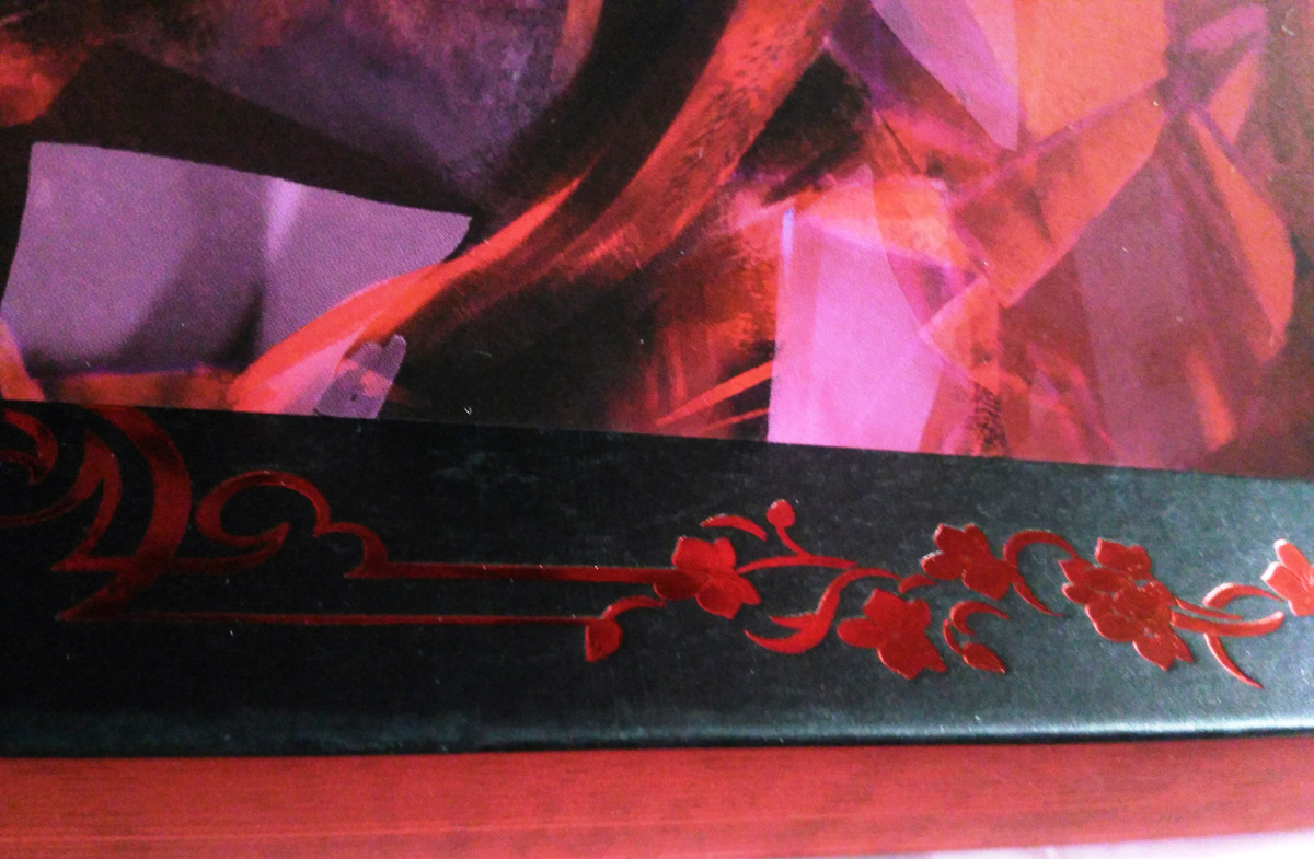Приветствую вас, дорогие друзья! Сегодня мой обзор посвящен не содержанию, а дизайну. Книга, которую я хочу представить, оформлена от переплета до страниц как единая композиция. Причем этот шедевр скрыли под обычной суперобложкой. Знакомьтесь: "Дуэль с лордом вампиров", автор Элис Кова. Эта книга "пришла" ко мне сама, это подарок :) Прежде всего бросились в глаза красные страницы сбоку, будто их обмакнули в кровь. Кажется такой эффект я когда-то видела в старом издании классики, не помню в каком. Тогда страницы были окрашены в зеленый в сочетании с темным переплетом. Яркое оформление привлекает и уже настраивает на вампирскую атмосферу. Порадовало то, что краска не осталась на пальцах. Открываем книгу... Форзацы в глубоком красном оттенке с цветочным узором символизируют страсть и нежность, силу и слабость. И снова кровь. По цитатам читатель уже может представить, что его ждет :) Листаем книгу... Страницы тоже украшены цветочными узорами. Я прочитала главы три, когда наконец догадал