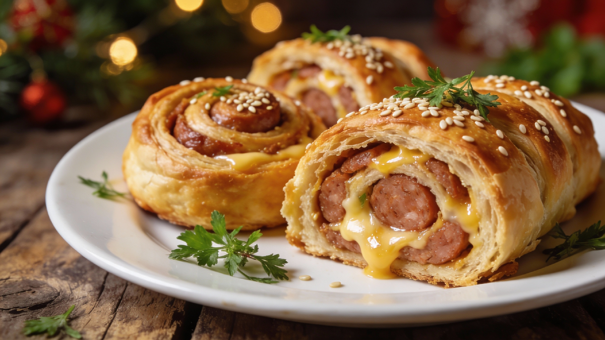 Рулетики из слоёного теста с колбасой и сыром — это закуска, которая требует минимум усилий, но максимум результата. На новогоднем столе они выглядят точно так же эффектно, как сложные блюда, но готовятся за считанные минуты. Готовьте их в день праздника или с вечера, и они обязательно станут звездой вашего стола — это гарантировано.