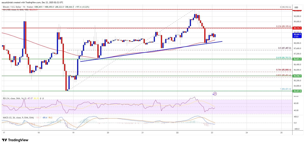 π― Bitcoin ΡΠ΄Π΅ΡΠΆΠΈΠ²Π°Π΅Ρ ΡΡΠΎΠ²Π΅Π½Ρ, ΠΊΠΎΠ»Π΅Π±Π°Π½ΠΈΡ Π² Π·ΠΎΠ½Π΅ 89.1k