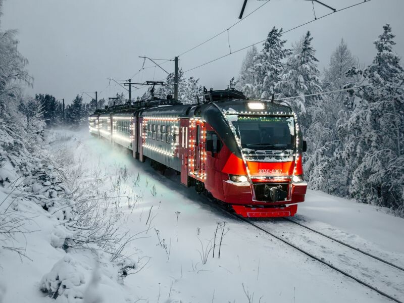 ❄️ В Красноярске сияющий новогодний электропоезд вышел на маршруты