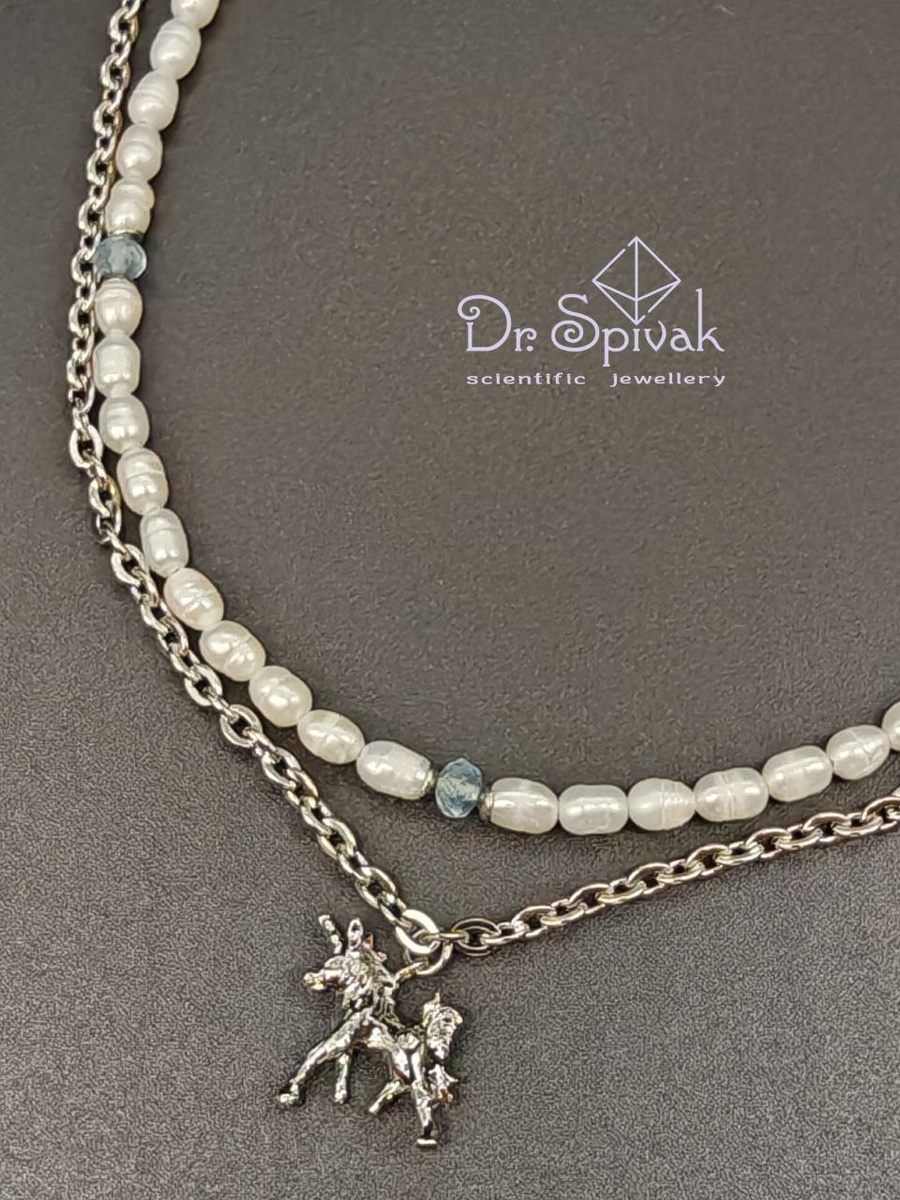 Это колье создано для маленькой мечтательницы, которая верит в чудеса. Классическая нить белоснежного речного жемчуга дополнена капельками небесно-голубого хрусталя, напоминающими чистое утреннее небо. Изюминка украшения — изящная цепочка с миниатюрным единорогом. Говорят, он приносит удачу и охраняет самые заветные мечты. Идеальный подарок для юной леди, который подчеркнет её нежность и добавит капельку волшебства в каждый день. 🦄💎 2200₽ #жемчуг