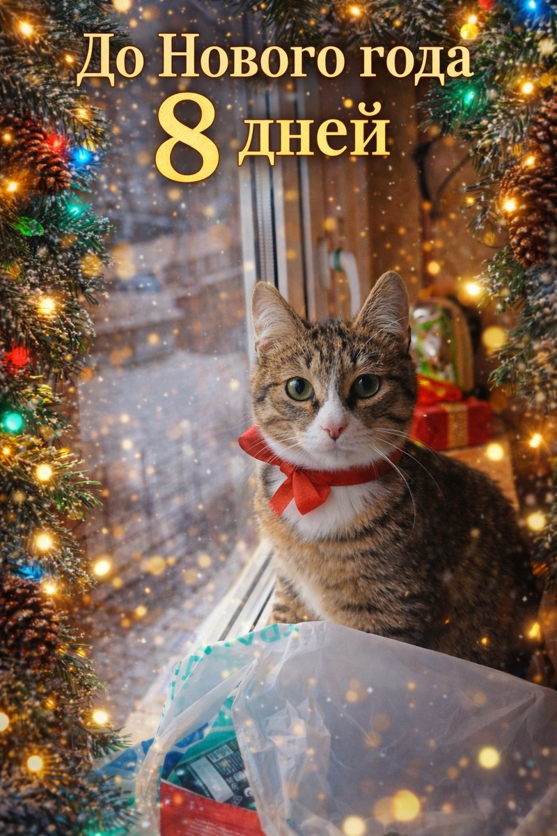 До Нового года - 8 дней. Пусть сегодня будет уютно: тепло дома, огоньки настроения и хорошие новости. ✨🐾