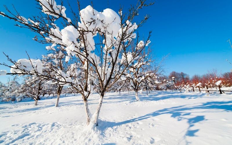 Зимние солнечные ожоги – серьёзная проблема, с которой сталкиваются многие садоводы, особенно в регионах с малоснежными зимами и ярким солнцем. В морозные, но ясные дни растения накапливают тепло за счёт солнечных лучей, а ночью под воздействием мороза происходит резкое охлаждение. Такая температурная контрастность вызывает повреждение тканей – появление бурых пятен, высыхание и даже отмирание побегов и коры. Чтобы защитить растения от солнечных ожогов, одним из классических и наиболее эффективных методов является побелка стволов и основных ветвей плодовых деревьев и кустарников. Белый цвет отражает солнечные лучи, не позволяя коре перегреваться, и предотвращает образование трещин и морозобоин. Для побелки используют специальные садовые составы с медным купоросом, способные дополнительно защитить от грибковых заболеваний. Ещё один простой, но действенный способ – создание притеняющих экранов с помощью сеток, марли или джутовой мешковины. Эти материалы пропускают воздух и влагу, но расс