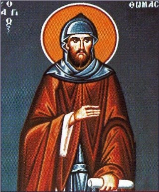 Преподобный Фома родился в поселении у подножия Киминской горы в Вифинии. С юных лет он избрал для себя путь иночества и удалился в один из окрестных монастырей. К тому времени, когда византийский сановник Галоликт основал на реке Сагарисе монастырь, преподобный Фома уже приобрел большой опыт иноческой жизни, и братия избрала его настоятелем новой обители. Отсюда преподобный Фома ушел в пустыню, где долго жил отшельником, претерпевая многие козни диавола. Господь прославил самоотверженного подвижника даром исцелений и прозорливости. Однажды император Лев VI Мудрый прибыл в обитель к святому Фоме за советом. Властитель не нашел преподобного в монастыре и отправил к нему своего посла с письмом. Едва посланник приблизился к жилищу угодника Божия, тот уже вынес ему запечатанный ответ, который разрешил сомнения императора. Всякий, кто имел какую-либо душевную потребность, безбоязненно, не смущаясь дальностью расстояния и времени, обращался к преподобному и получал ожидаемое духовное утеш
