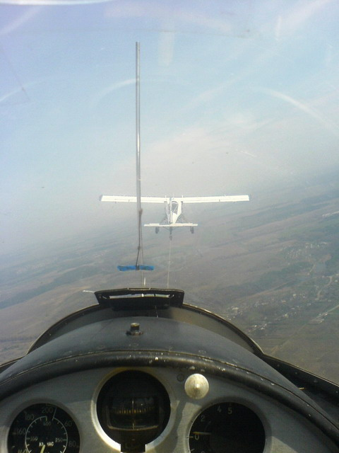 Тракторист оказался парнем смышленым. На мои сто вопросов нашлось ровно сто ответов. Совсем недалеко от пшеничного поля, за лесопосадкой, оказалась скошенная полоска, вполне пригодная для взлета буксировщика вместе с планером. «Бланик» мы подцепили канатом к трактору и перетащили на другую площадку. И, надо сказать, вовремя. За мной уже вылетел самолет, который кружился над населенным пунктом, вызывая меня по радиосвязи.