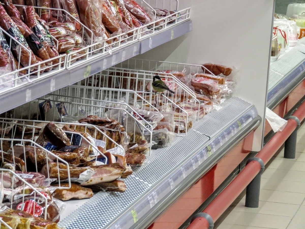 Снег валит и валит. Незваная гостья в колбасном раю: как синичка устроила переполох в магазине